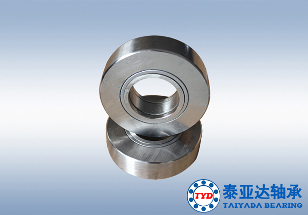曲線滾輪軸承由一根作為滾子組內滾道的螺栓及一個厚壁外圈組成,螺栓軸的台肩及壓在螺栓上的端麵擋圈組成了外圈沿兩個側麵方向的引導麵。